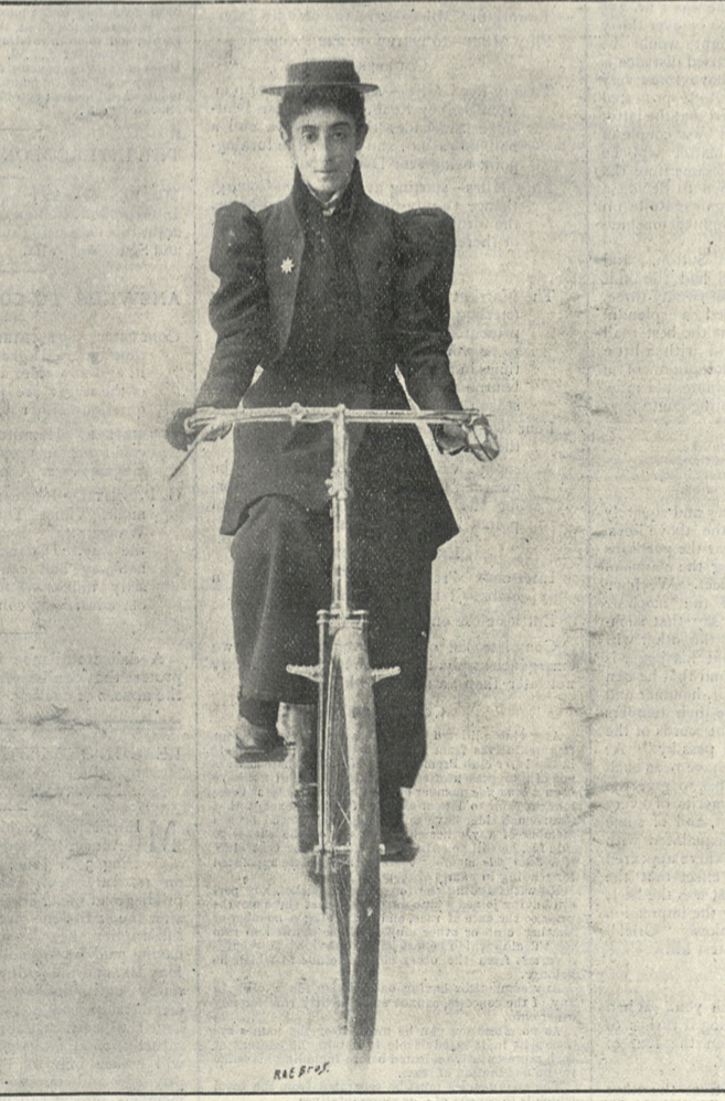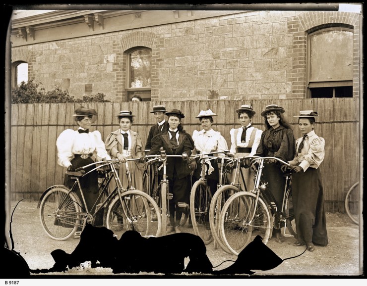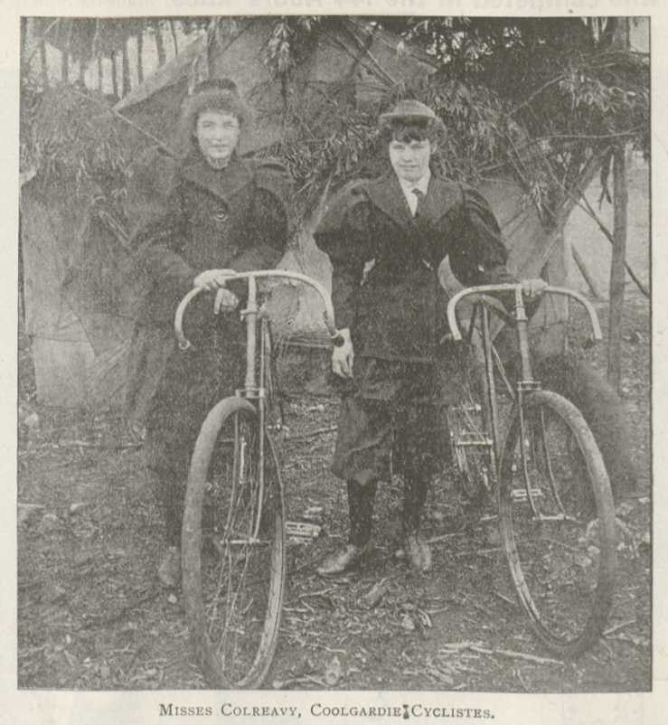 Cyclists were (and are) as seasonal as eels, for the writer of the The Ladies Column of the Williamstown Chronicle the boughs of golden wattle blossom coming in from the outlying suburbs, was all that was needed to prompt discussion on the best fabrics for summer costumes and an update on the latest fashions for that most practical of cycling costumes, rational dress.